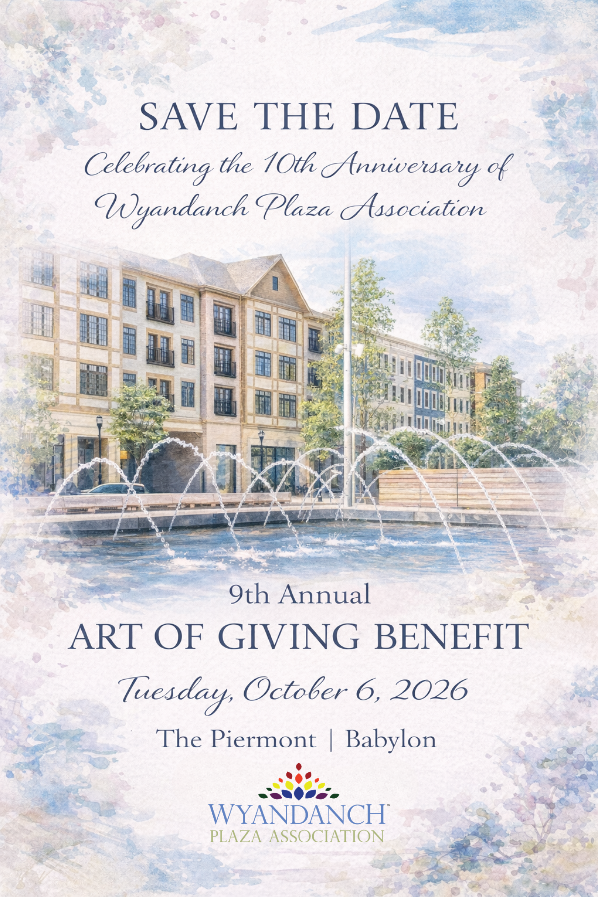 The Wyandanch Plaza Association (WPA) invites you to support our 9th Annual Art of Giving Benefit on Tuesday, October 6, 2026, from 6:30 PM to 10:30 PM at The Piermont, located at 494 Fire Island Avenue in Babylon.